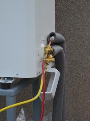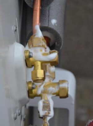 W pompach ciepła typu SPLIT musimy połączyć jednostkę zewnętrzną z wewnętrzną za pomocą przyłączy chłodniczych o odpowiednich średnicach (niskiego i wysokiego cieśnienia). Przed połączeniem jednostek gazem, należy przeprowadzić test szczelności połączenia. Polega on na napełnieniu układ pompy ciepła azotem do ciśnienia min.30 bar, maksimum 40 bar. Próba szczelności powinna trwać minimum 40 min. Skracanie tego czasu to często stosowane praktyki firm wykonawczych. Tylko taki czas daje gwarancje, że połączenie wykonane zostało poprawnie. Kolejną drogą na skróty jest wykonanie testu szczelności bez użycia azotu-za pomocą pompki próżniowej. Tylko użycie azotu zagwarantuje osuszenie (usunięcie wilgoci) instalacji wewnątrz pompy ciepła co ma ogromne znaczenie dla pracy i żywotności sprężarki.